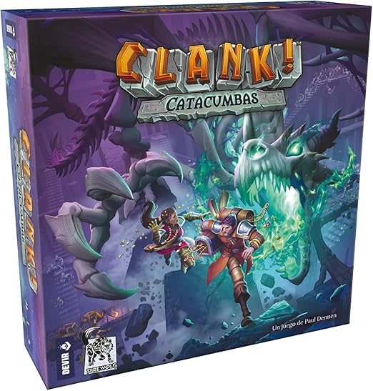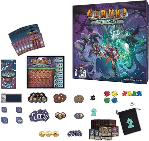Descubre Clank! Catacumbas, un emocionante juego de mesa de exploración y aventura en las profundidades de peligrosas catacumbas. Lucha contra monstruos, busca tesoros y escapa del temido dragón. ¡Sumérgete en la diversión con esta experiencia única de construcción de mazos!