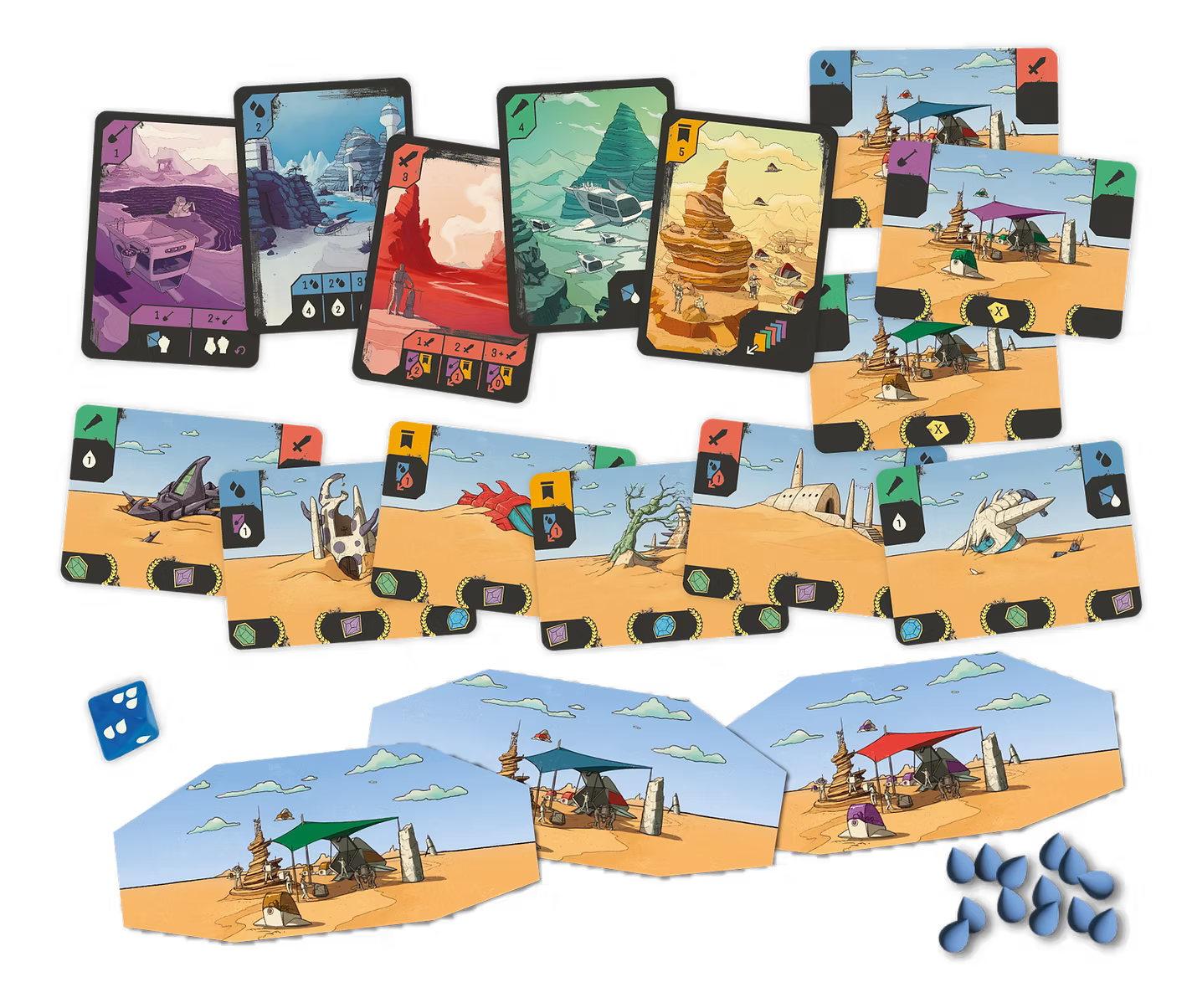 Nos enfrentaremos entre distintos clanes durante 15 rondas. En cada ronda elegiremos una acción: podremos Excavar tecnologías antiguas, Explotar el agua de los oasis, Exterminar a nuestros oponentes, Explorar el territorio o Expandir nuestras posibilidades.