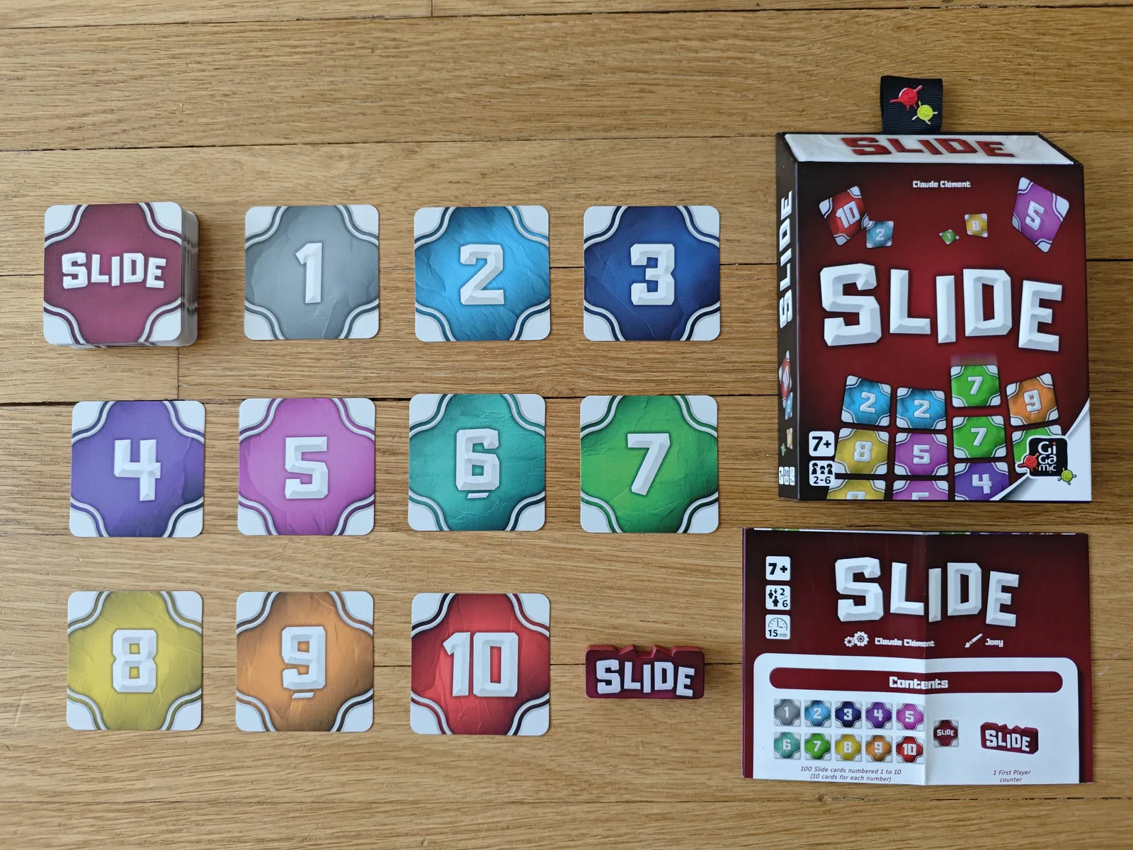 Slide es un juego de cartas rápido y estratégico en el que el objetivo es deshacerte de cartas y dejar la menor cantidad de puntos posibles.