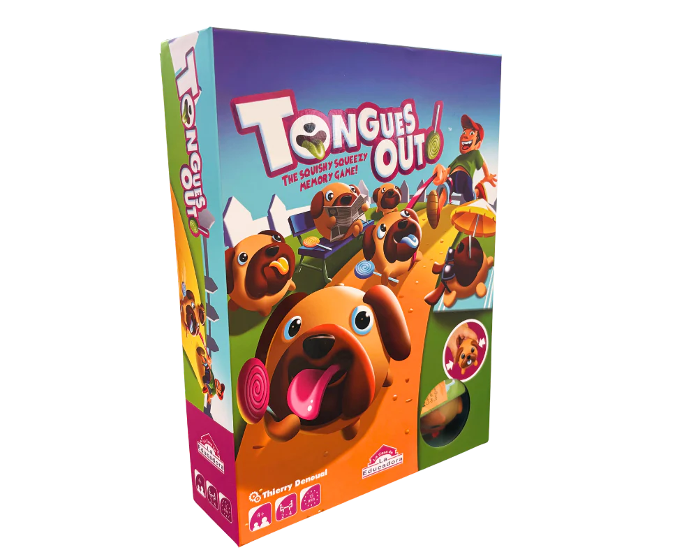 “Tongues Out!” de Blue Orange es un juego de mesa divertido y visualmente encantador, ideal para niños y familias. Los jugadores deben encontrar qué perritos se comieron los dulces de colores, usando la memoria y observación. Cada vez que se elige un perrito, se aprieta suavemente para que saque la lengua y revele el color del dulce escondido. El objetivo es reunir pares del mismo color antes que los demás, recordando qué perritos ya han sido revelados.